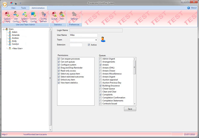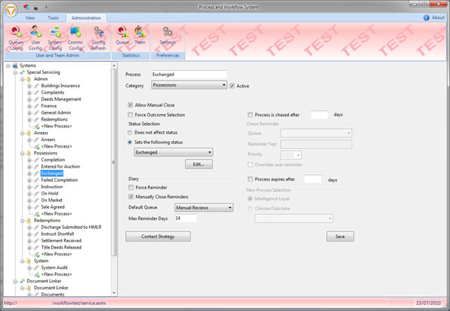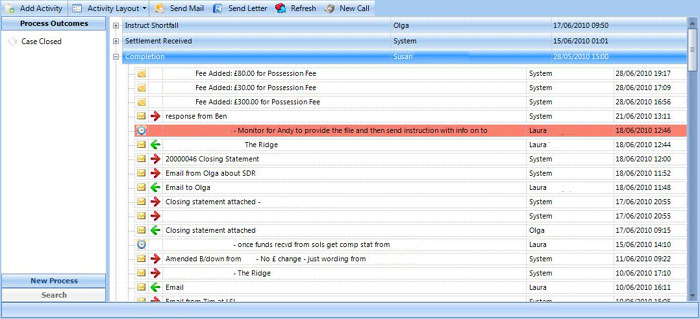 Proflow can be configured 'loosely' so that agents can add free text notes and manually change the status of a work item, or for more mature business processes it can be configured so that agents can select only from a pre-defined set of outcomes, maximising productivity by reducing agents' input to a single mouse click.