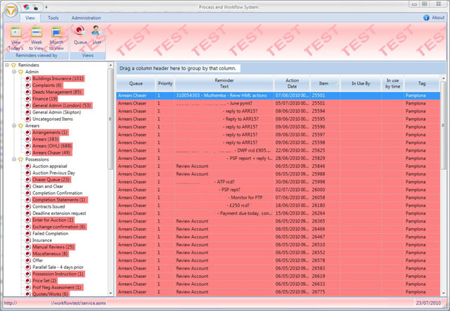 Workflow is the delivery of work items to agents' desks and the tracking of subsequent activity on those work items. A work item is any activity that requires manual intervention, usually an agent contacting a customer by phone, but can be anything where some sort of manual processing is required. A work item could be a loan account that has gone into arrears, a new marketing lead that requires follow up, a customer service request, etc.