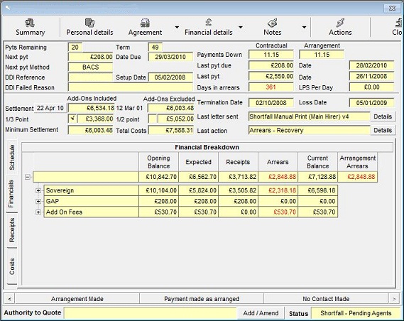 - Comprehensive settlement quote facility allowing backdated and reduced settlement figures, both fully auditable.